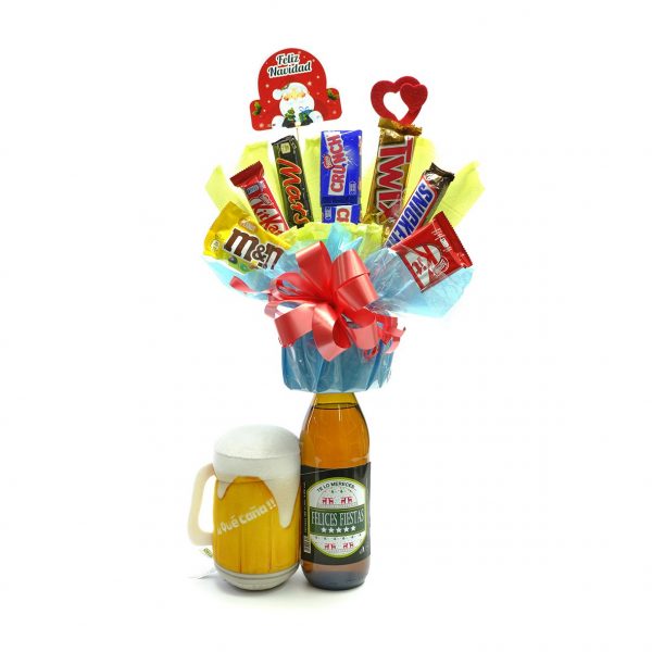 Cesta con caña. con esta cesta de bombones de chocolates sorprenderás a esa persona tan especial. Es un buen regalo original para cumpleaños, san valentin, día de la madre, día del padre y cualquier ocasión especial.