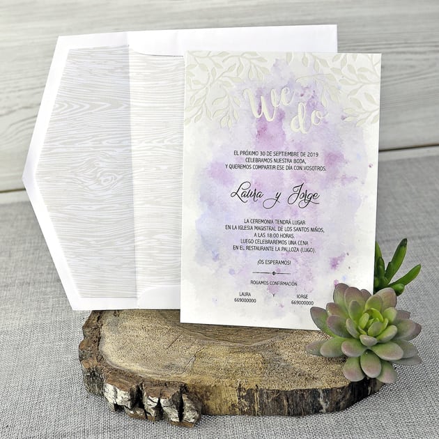 Invitación para bodas original y económicas, todas nuestras invitaciones incluyen el sobre. Con esta invitación de boda sorprenderás a tus invitados.