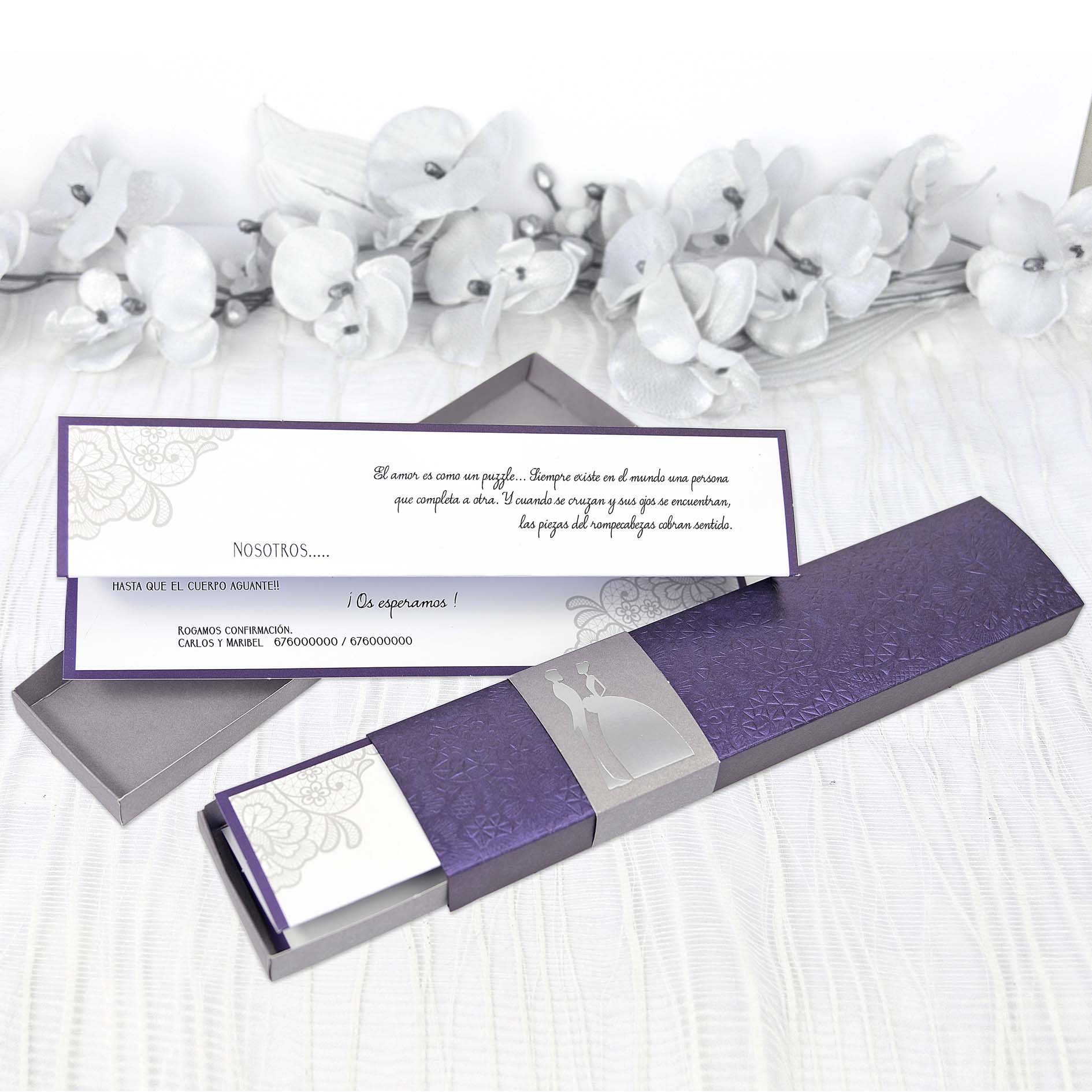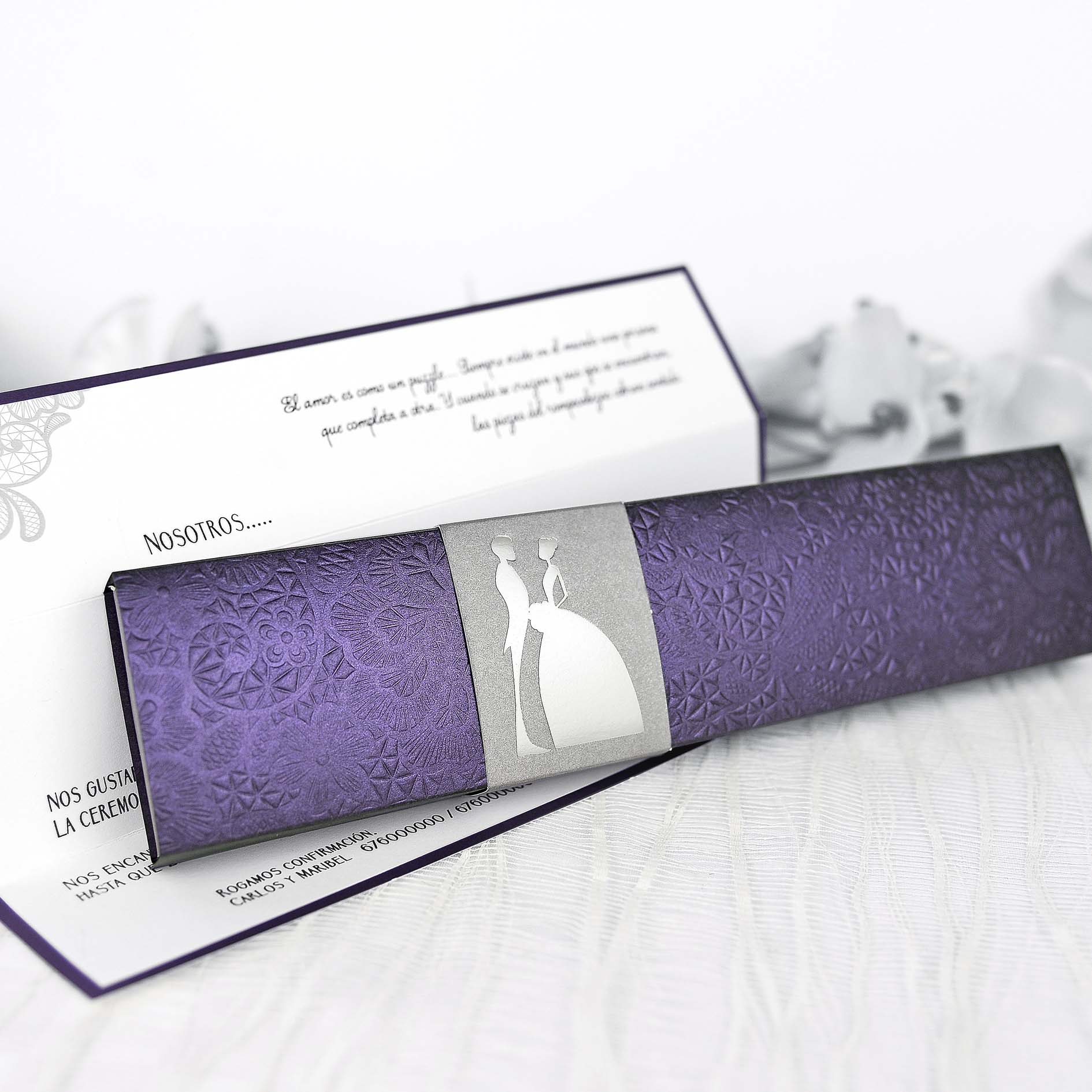 Invitación para bodas original y económicas, todas nuestras invitaciones incluyen el sobre y complementos como se muestran en las imágenes. Con esta invitación de boda sorprenderás a tus invitados.
