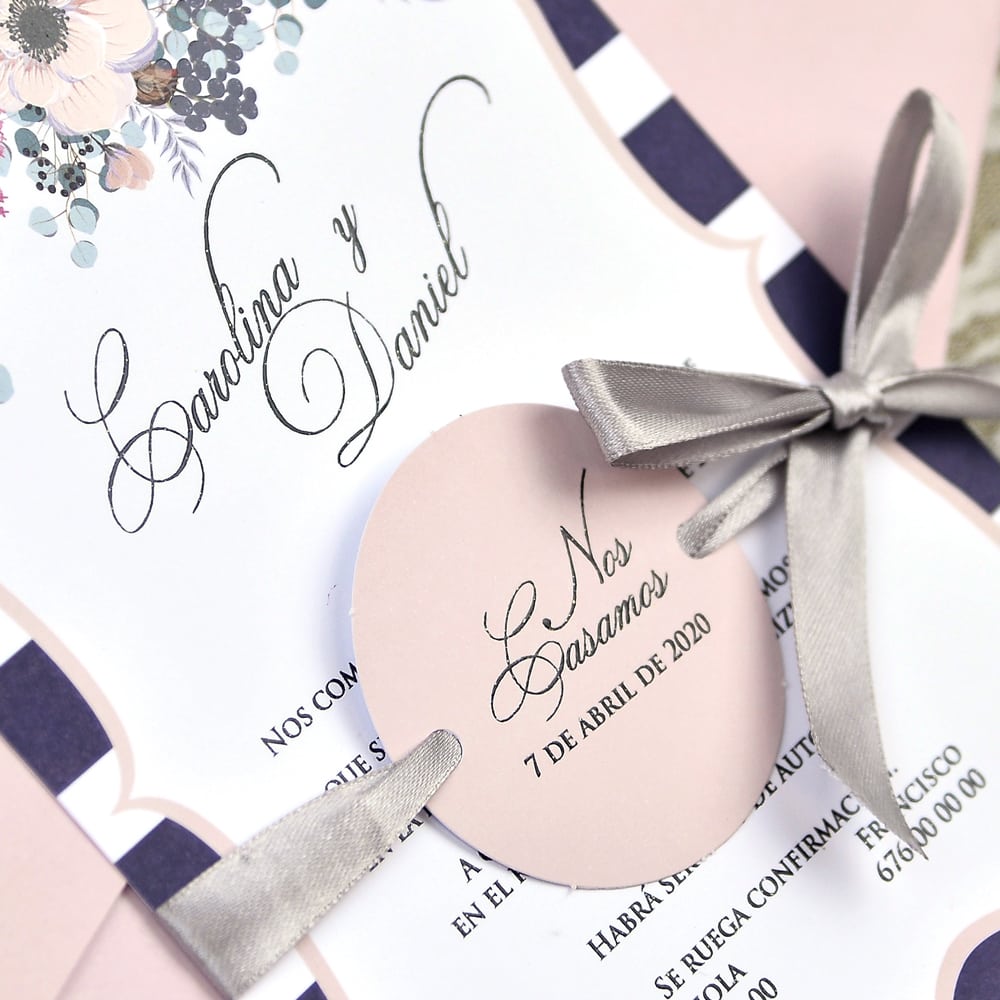 Invitación para bodas original y económicas, todas nuestras invitaciones incluyen el sobre y complementos como se muestran en las imágenes. Con esta invitación de boda sorprenderás a tus invitados.