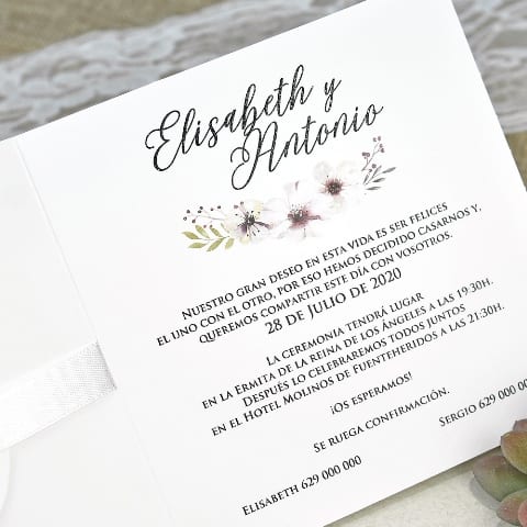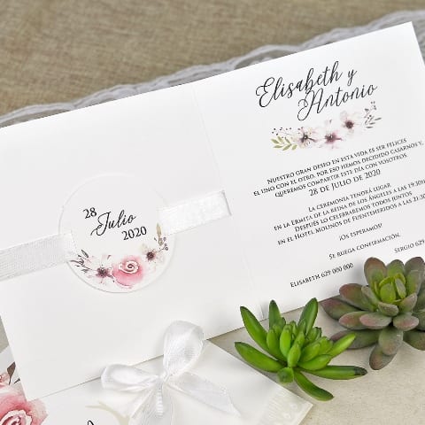 Invitación para bodas original y económicas, todas nuestras invitaciones incluyen el sobre y complementos como se muestran en las imágenes. Con esta invitación de boda sorprenderás a tus invitados.