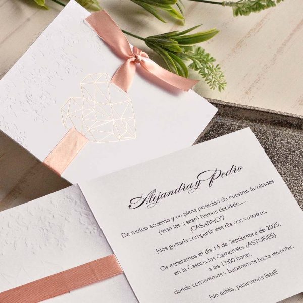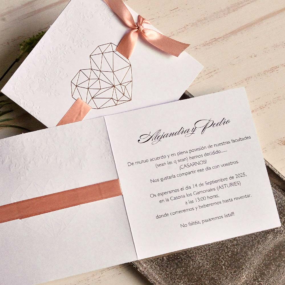 Invitación para bodas original y económicas, todas nuestras invitaciones incluyen el sobre y complementos como se muestran en las imágenes. Con esta invitación de boda sorprenderás a tus invitados.